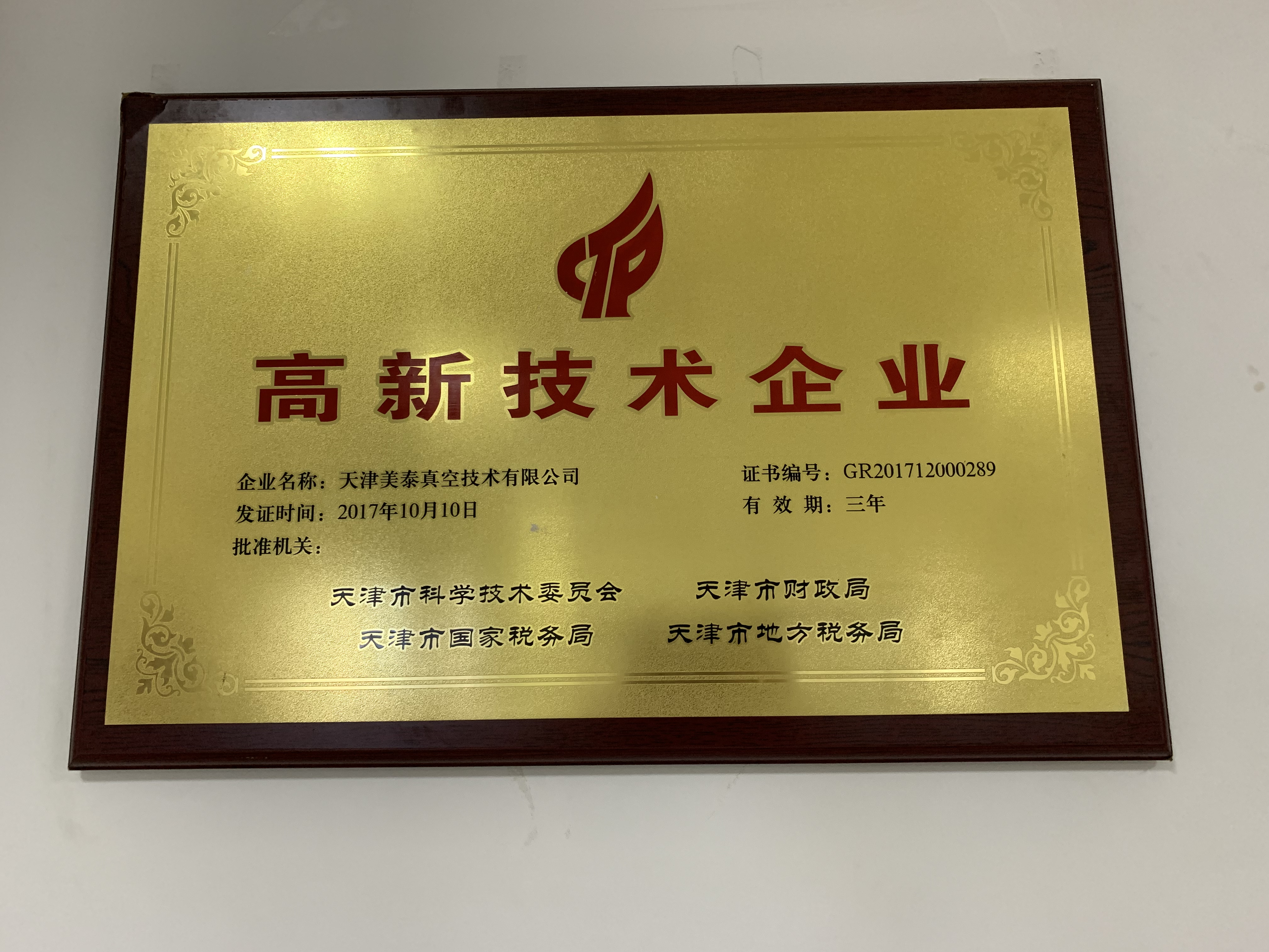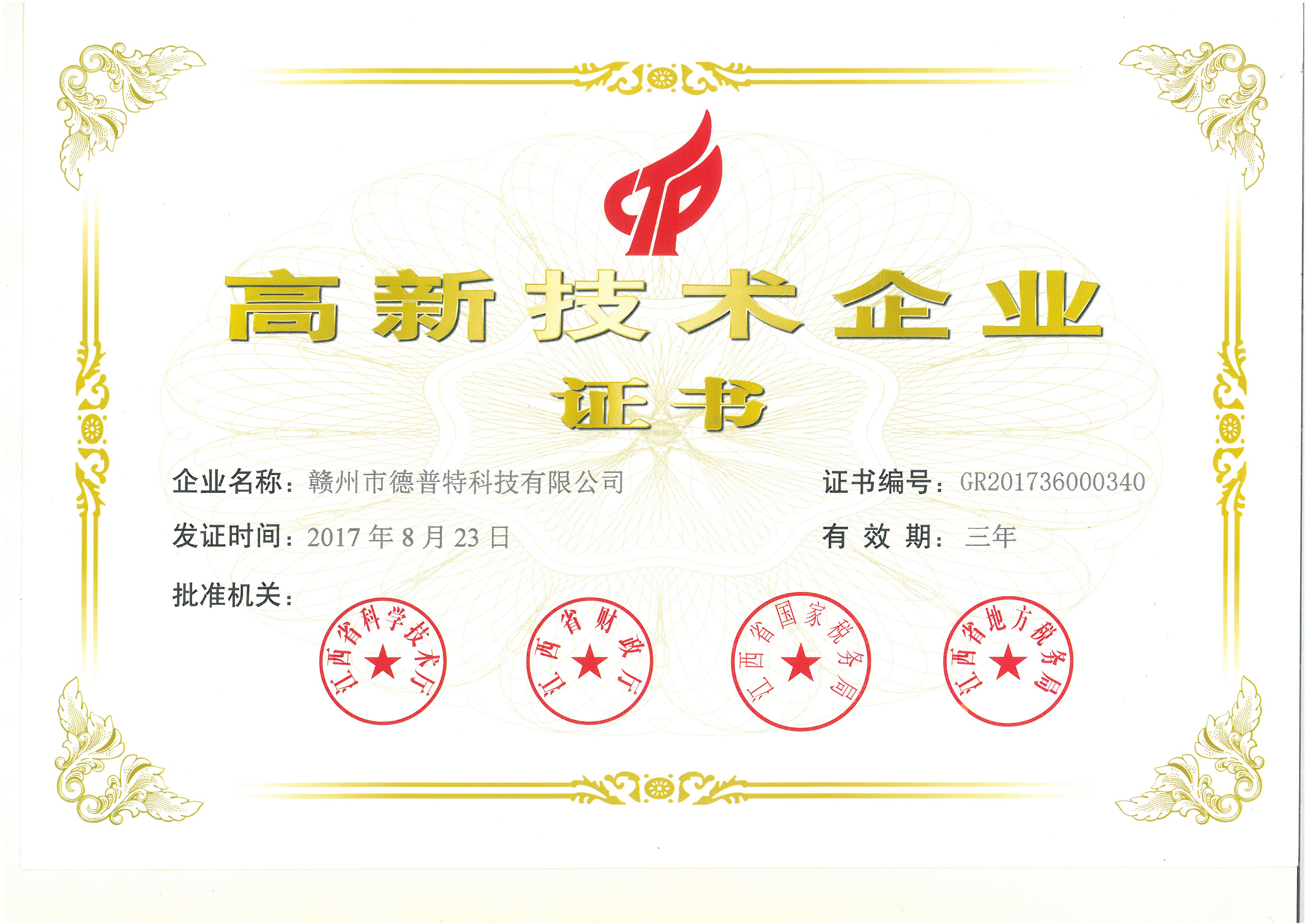 高新技术企业证书