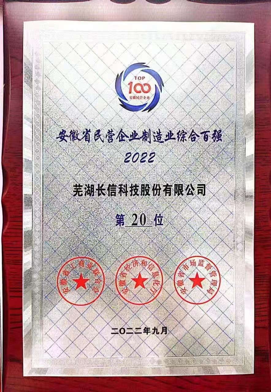 2022年安徽省民营企业制造业综合百强 序号:20
