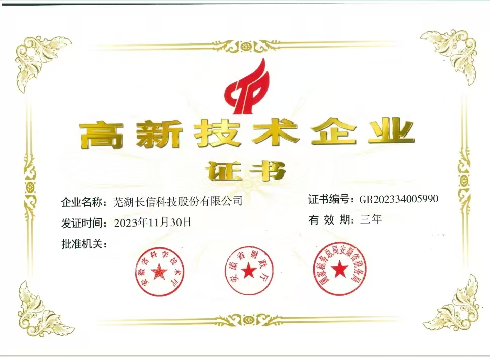 2023年安徽省高新技术企业证书