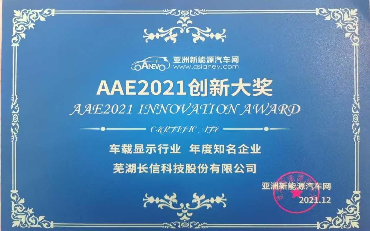 2021年车载显示行业、年度知名企业“AAE2021创新大奖”