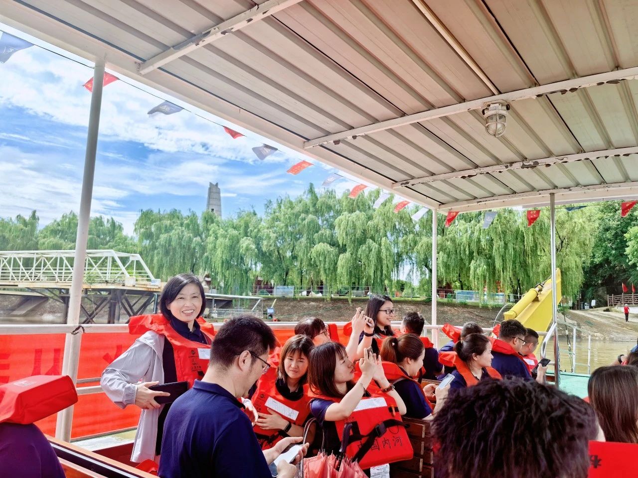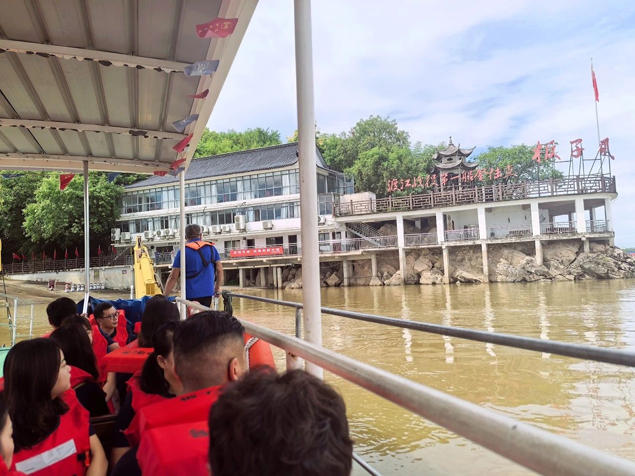 上午9时,全体党员身着厂服、佩戴党徽,在游船码头整齐列队登船前往渡江战役第一船登陆点——板子矶。江风猎猎,碧波荡漾,党员们遥望这片见证过历史性时刻的江面,仿佛置身于76年前百万雄师横渡长江的壮阔场景中。