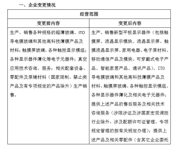 9、经营范围:生产、销售新型平板显示器件(包括触摸屏、液晶显示模块、