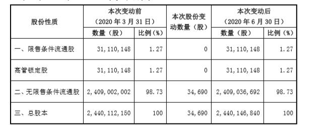 2020年第二季度,16877太阳集团转债因转股减少2,161张,转股数量为34,690股。截至2020年6月30日,公司可转债尚有3,470,818张,剩余可转债金额为347,081,800.00元。公司股份变动情况如下: